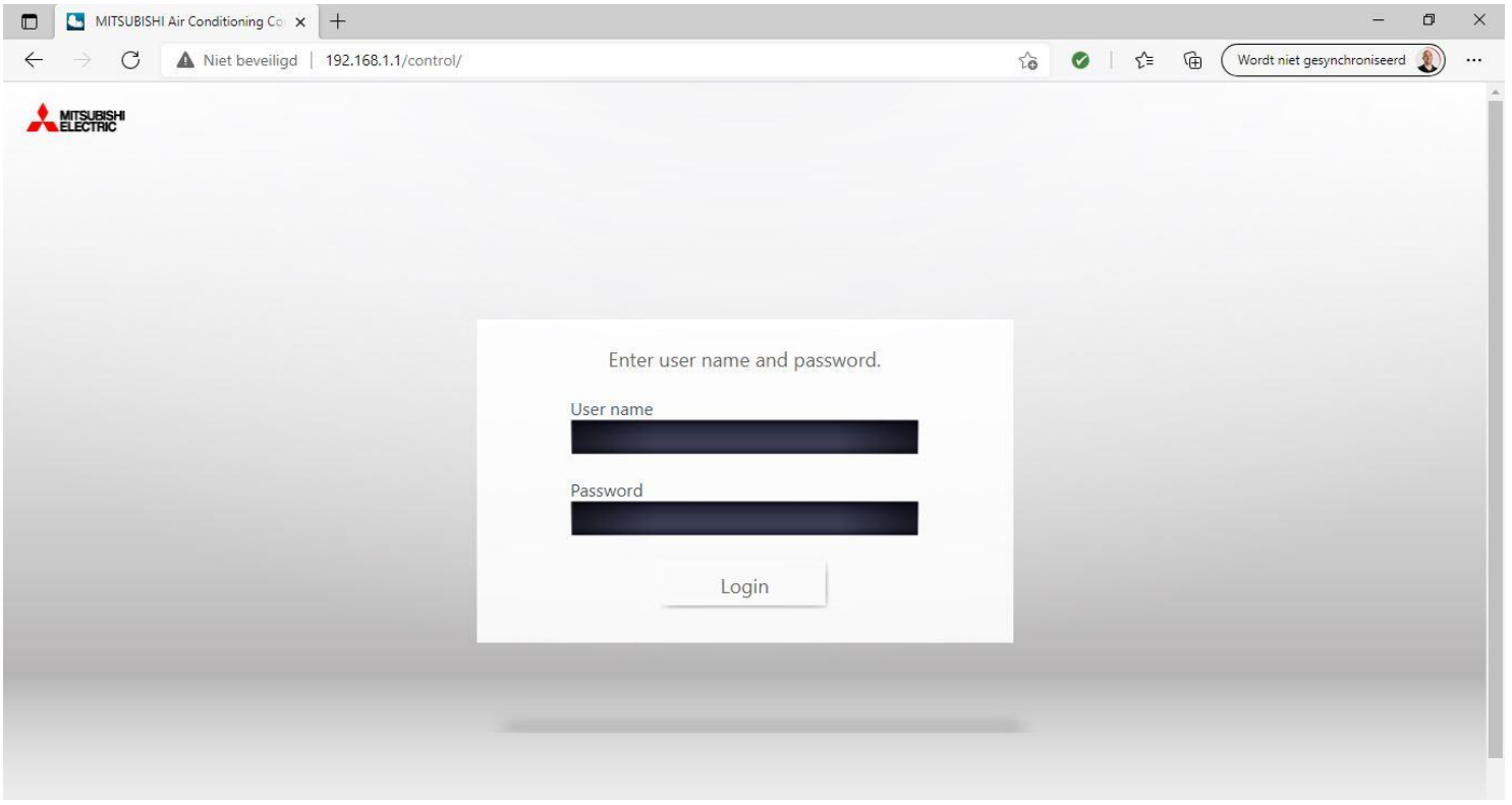 Open de webbrowser en navigeer naar http://192.168.1.1/control, wanneer de EW50 correct is aangesloten en inbedrijfgesteld treft u onderstaand scherm.