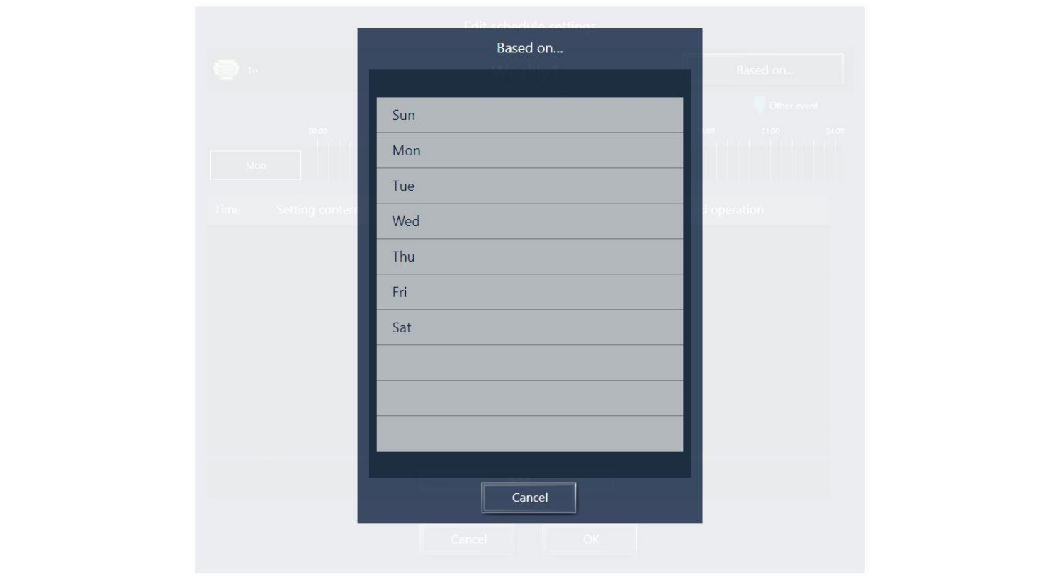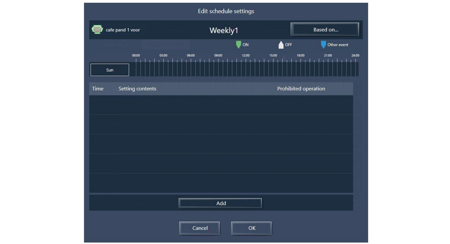 U kunt wanneer u dat wil individuele dagen instellen met verschillende kloktijden en aan en uit schakel momenten, dit mogen er zelfs diverse zijn. Als u op een nieuwe dag klikt kunt u er ook voor kiezen om een andere al ingestelde dag te kopiëren naar de geselecteerde dag. Dat doet u door rechts bovenin te klikken op Based on...