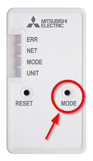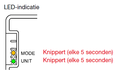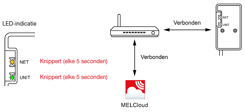 Zodra op submit is geklikt zal de NET- en UNIT-knop gaan knipperen. De unit kan nu verder aangemeld worden m.b.v. de MELCloud-app.