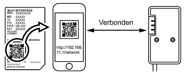 Scan vervolgens de QR-code op het etiket van de WiFi-Interface of type de URL (http://192.168.11.1/network) in je webbrowser.