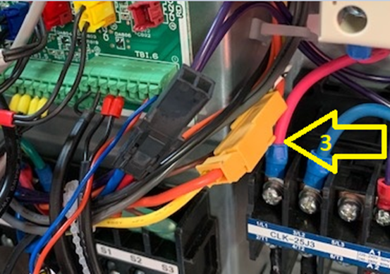 Als laatste moet de gele connector die met zijn bedrading aan S1 en S2 vastzit worden omgewisseld naar de zwarte connector nummer 3.