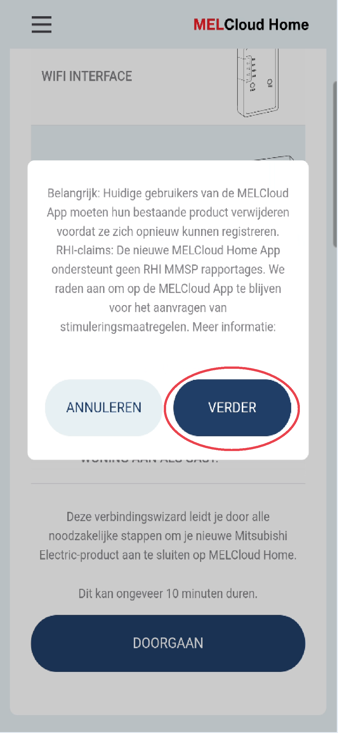 8. Volg bovenstaande stappen om de module in koppelmodus te zetten en klik op "DOORGAAN"
