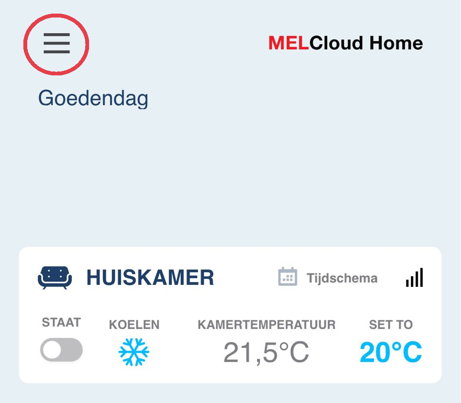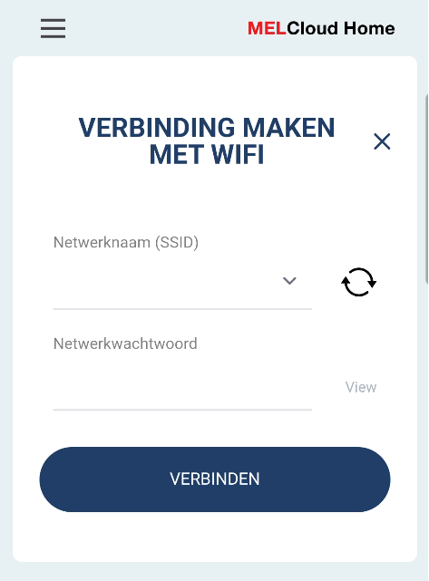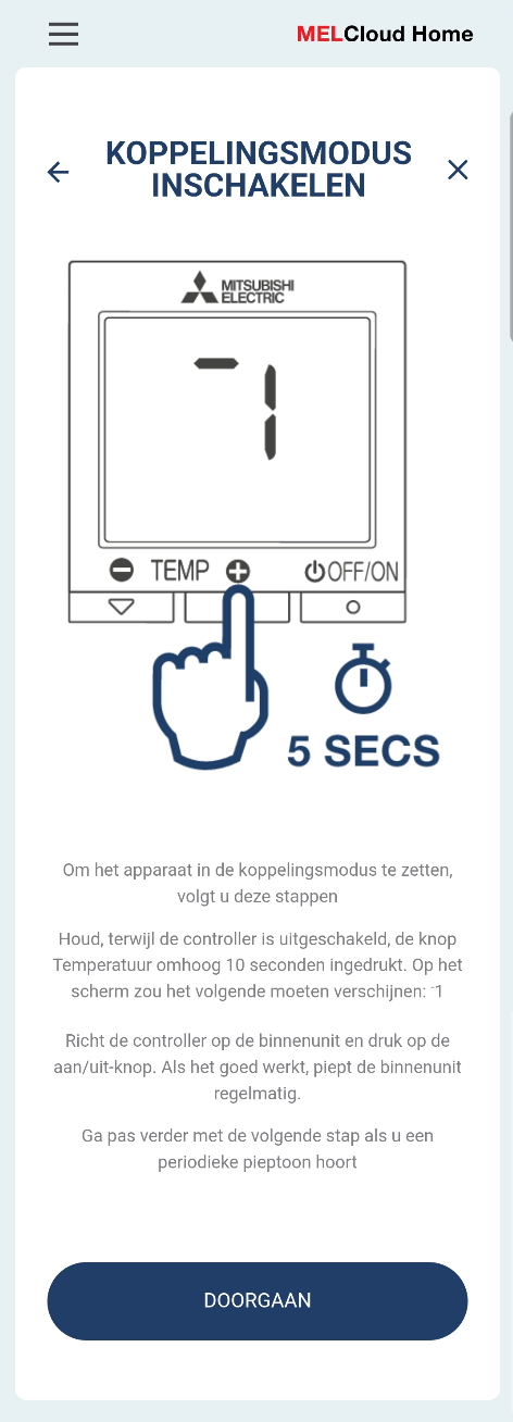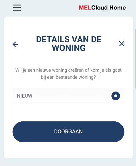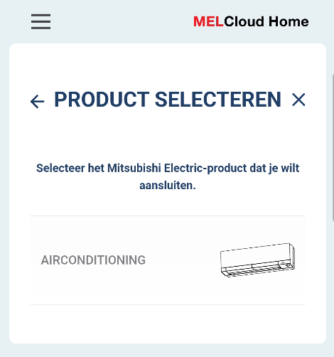 Het koppelen kan alleen in de MelCloud Home app en dus niet via de webbrowser.