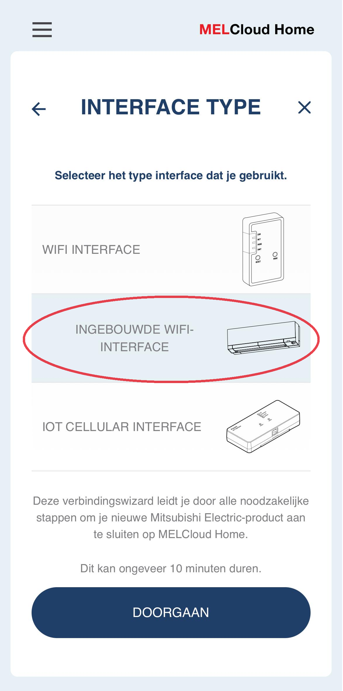 3. Klik op "INGEBOUWDE WIFI-INTERFACE" en vervolgens op "DOORGAAN"