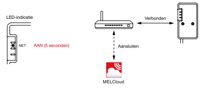 Wanneer er verbinding is gemaakt tussen de interface en router gaat de NET-knop aan voor 5 seconden.