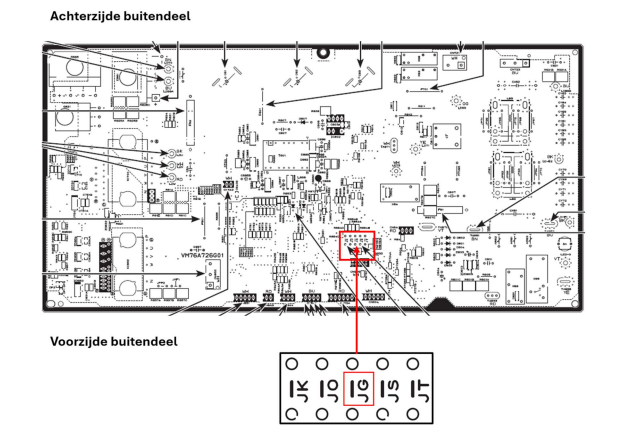 Wanneer op de print van het betreffende buitendeel de jumper JG door geknipt wordt kan het buitendeel op 16A aangesloten en afgezekerd worden.