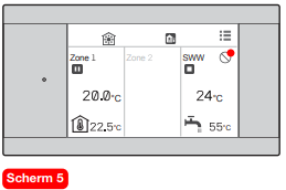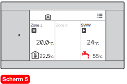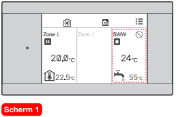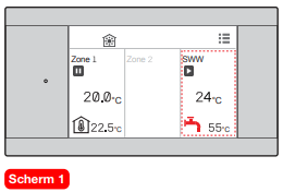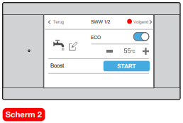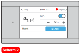 / Na een paar seconden is in het hoofdscherm bij SWW een systeem actief symbool zichtbaar en er zal weer warmtapwater geproduceerd worden.