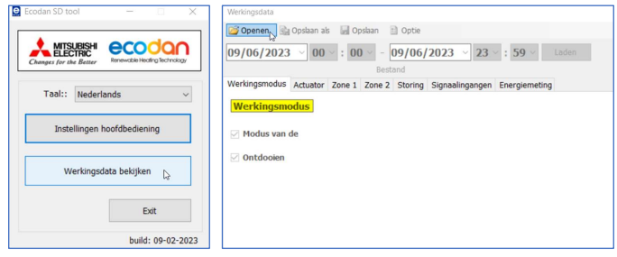 Start het programma op en selecteer “werkingsdata bekijken” en klik op “openen”