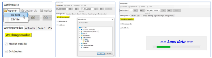 Selecteer “SD data” en klik hierop. Zoek de SD-geheugenkaart op in het geopende menu en selecteer “LOG” klik op “OK”. De data wordt ingelezen.