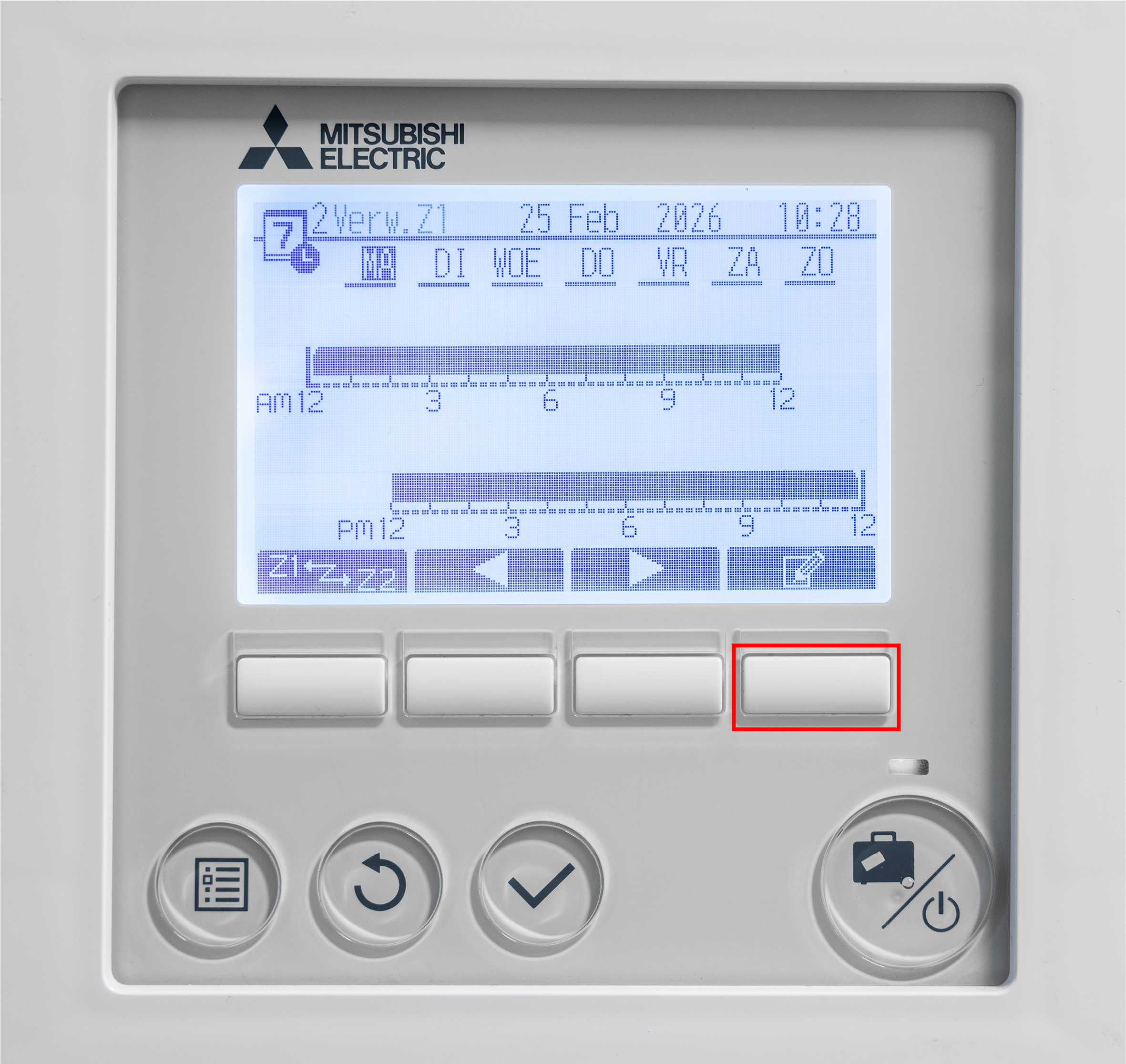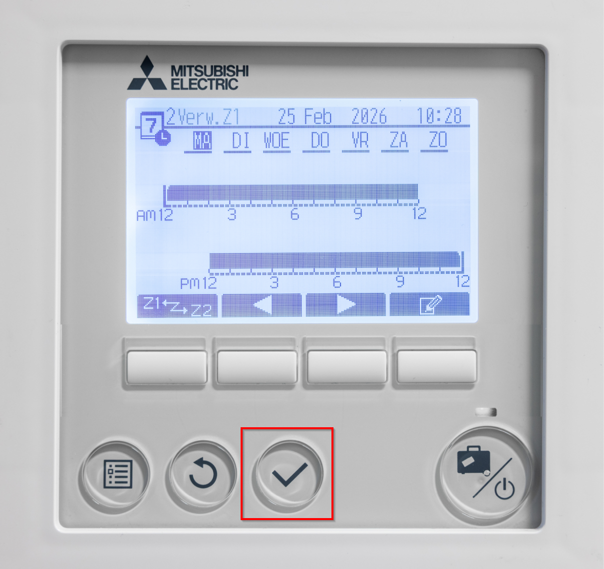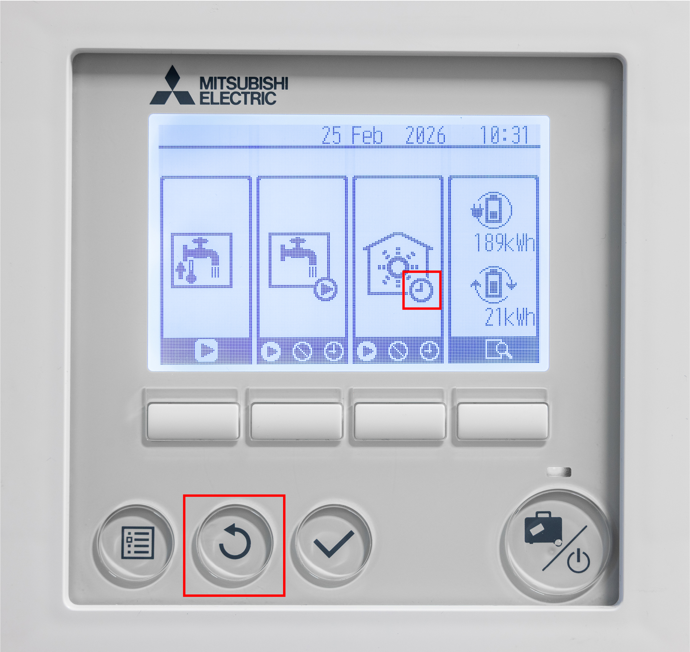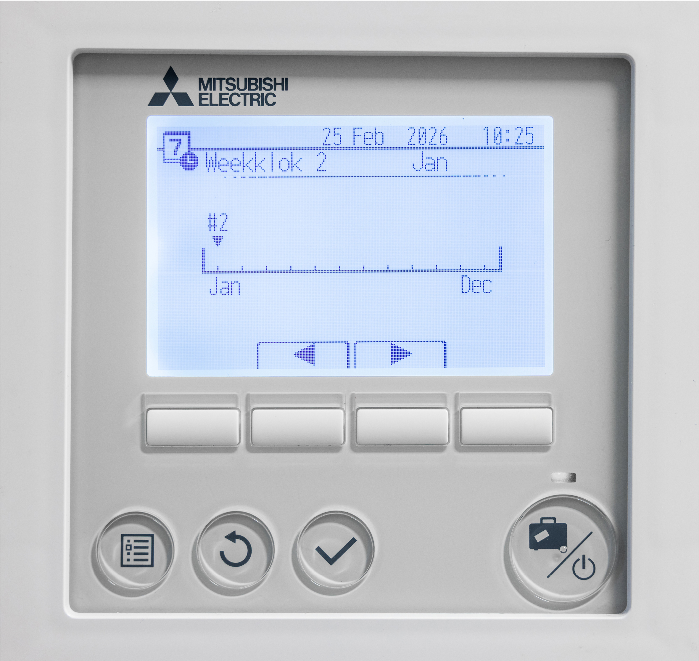 Om een timer in te schakelen op de bediening van de Ecodan warmtepomp dien je in het menu zijn. Een weekklok kan ingesteld worden voor tapwater, CV en koelmodus (alleen warmtepomp versie die kunnen verwarmen/koelen). De weekklok kan 2 keer worden ingesteld, bijvoorbeeld voor zomertijd en wintertijd. In de timer kan in een tijdsbestek van 24 uur 4 keer een periode van inactiviteit worden toegevoegd.