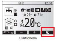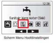 Als alle instellingen voor de weekklok gemaakt zijn en het beginscherm er uit ziet zoals hiernaast met de afbeelding, van een klok naast het symbool van tapwater en/of CV, dan is de weekklok actief. Instellingen kunnen altijd aangepast worden in het menu-weekklok, door opnieuw de stappen van 1 tot 5 te volgen