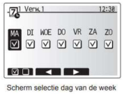 2. Op de afbeelding hiernaast is te zien dat in het 3e veld de optie weekklok gekozen en ingesteld kan worden.
